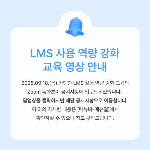 LMS 사용 역량 강화 교육 영상(Zoom 녹화본)